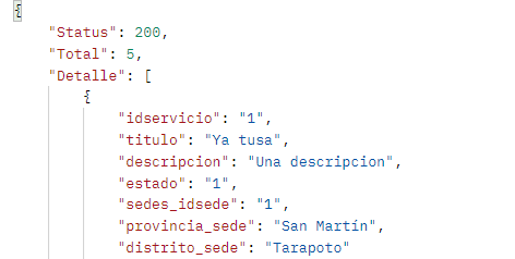 El resultado de la consulta de todas los destinos debería ser como se muestra en la siguiente imagen: