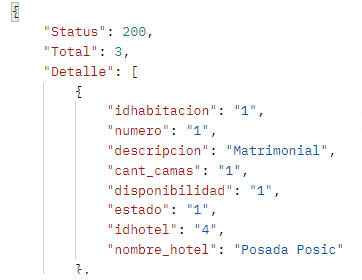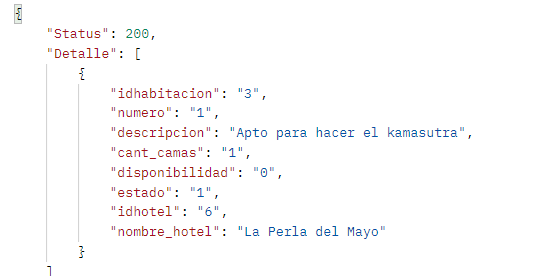 El resultado de la consulta de una habitacion en particular debería ser como se muestra en la siguiente imagen: