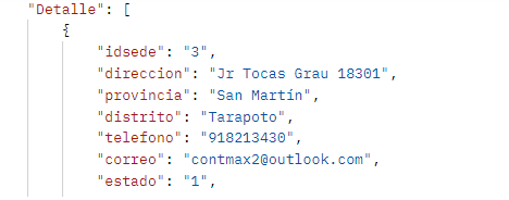 El resultado de la consulta de una sede en particular debería ser como se muestra en la siguiente imagen: