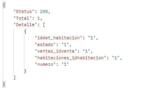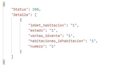 El resultado de la consulta de todas las habitaciones debería ser como se muestra en la siguiente imagen: